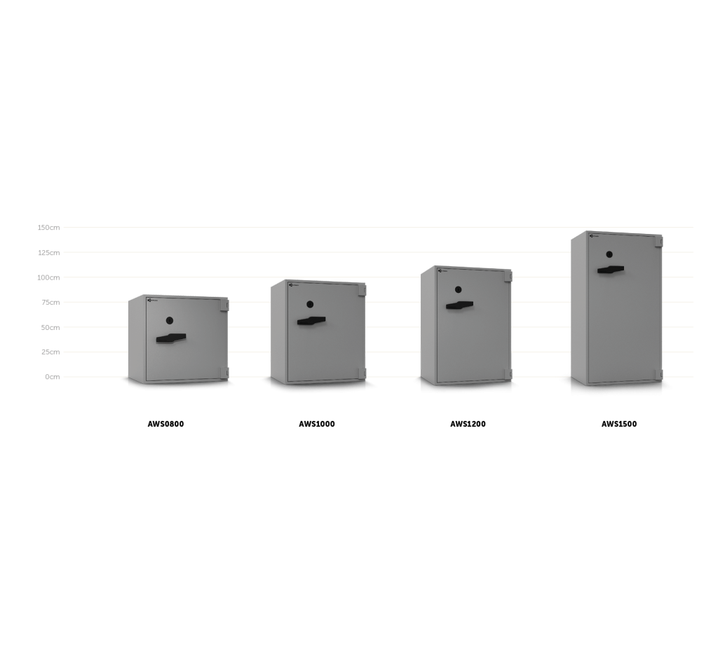 Die Wertheim AWS-Serie bietet das größte Innenraumvolumen unter all unseren Tresoren im Widerstandsgrad I. Diese Wertschutzschränke sind ideal für die Aufbewahrung größerer Mengen an Wertgegenständen, Gold, Schmuck oder Dokumenten geeignet. Trotz des großzügigen Innenraums haben die Tresore der AWS-Serie ein relativ geringes Transportgewicht – möglich durch innovative Konstruktionsmethoden und den Einsatz hochresistenter, aber leichter Füllmaterialien.