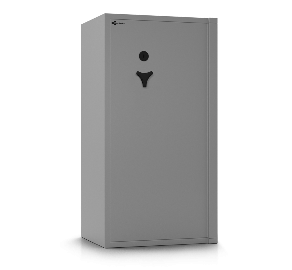 The door hinge is standard on the right but can be ordered with a left hinge at no extra cost. The external door hinge, a signature Wertheim feature, allows the door to open up to 180ยฐ, providing easy access to the full interior width of the safe for convenient loading.