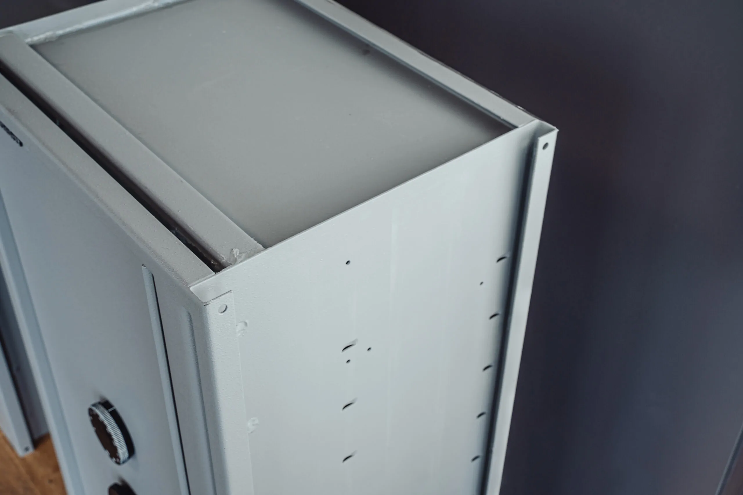 Optionally, the back panel of the safe can also be reinforced to adjust the depth of the safe to match the thickness of the wall. This provides extra protection, especially if the wall behind the safe is thin, preventing access through the rear panel.