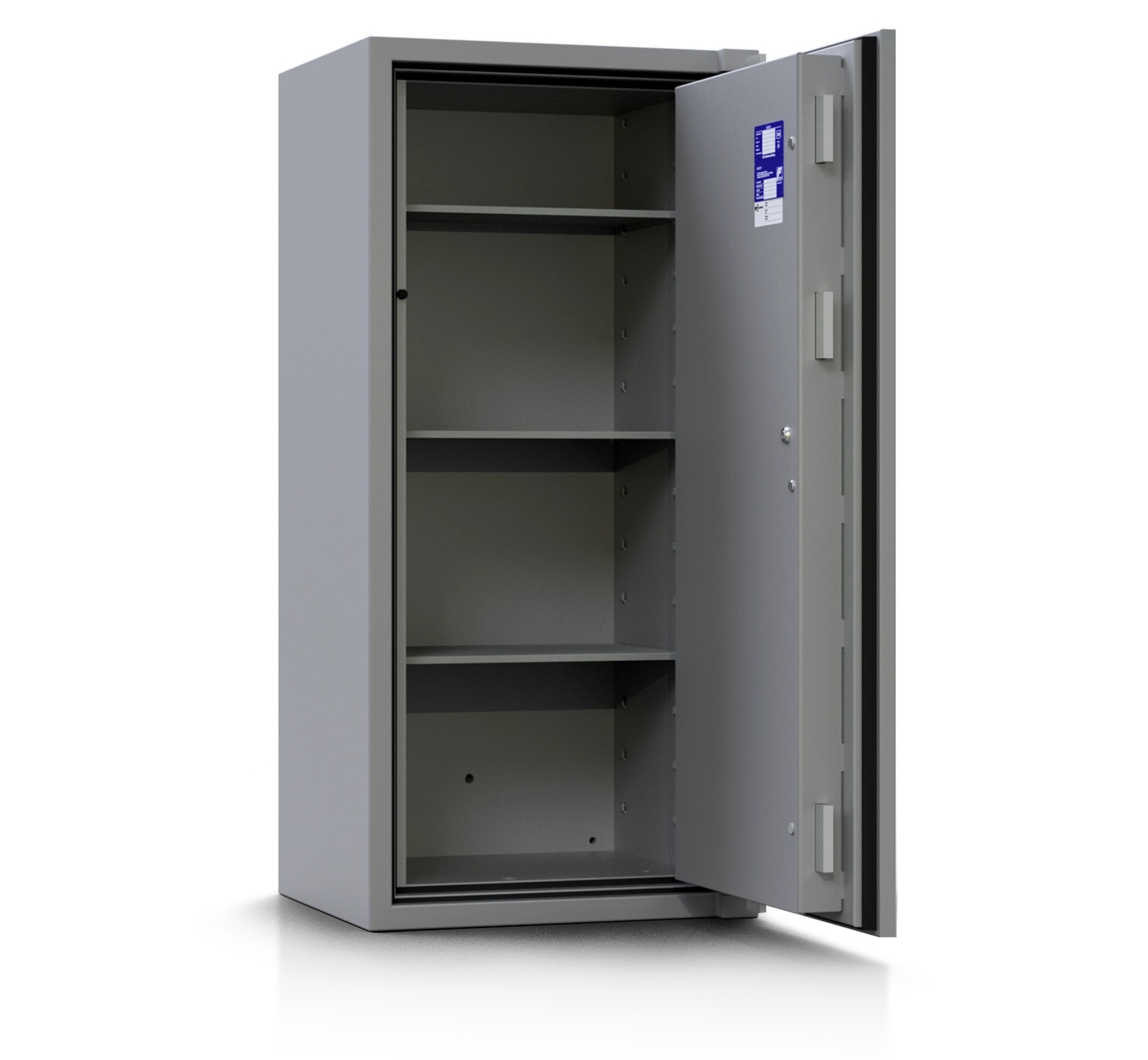 Standardmäßig werden die AP-Tresore mit einem Doppelbartschloss mit zwei Schlüsseln geliefert. Optional können Sie Ihren Tresor mit einem Elektronikschloss oder weiteren Schlossmodellen ausstatten. Ab AP15 ist der Einbau eines Elektronikschlosses mit mechanischem Notschloss (Combi B90) möglich. Bei allen Modellen sind Doppelsperren (zwei Schlösser gleichzeitig) möglich.