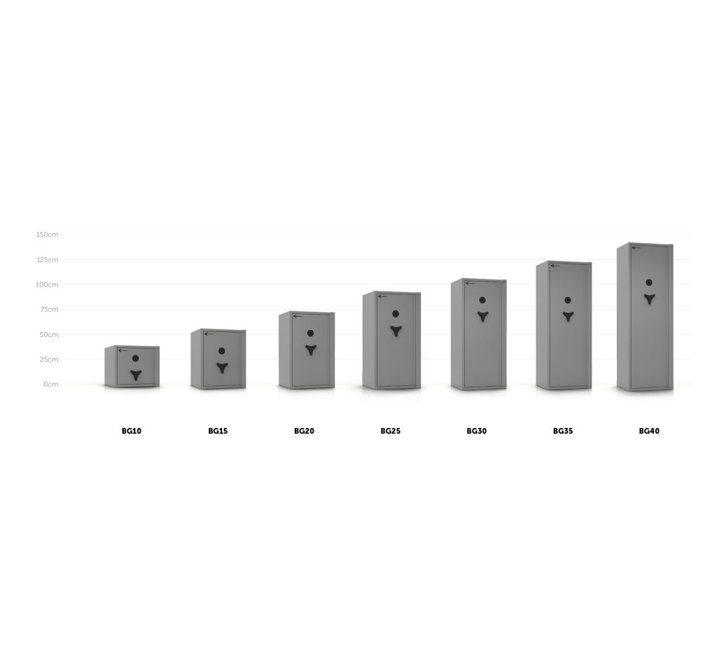 Standardmäßig werden die BG-Tresore mit einem Doppelbartschloss mit zwei Schlüsseln geliefert. Optional können Sie Ihren Tresor mit einem Elektronikschloss oder weiteren Schlossmodellen ausstatten. Ab BG15 ist der Einbau eines Elektronikschlosses mit mechanischem Notschloss (Combi B90) sowie Doppelsperren (zwei Schlösser gleichzeitig) möglich.