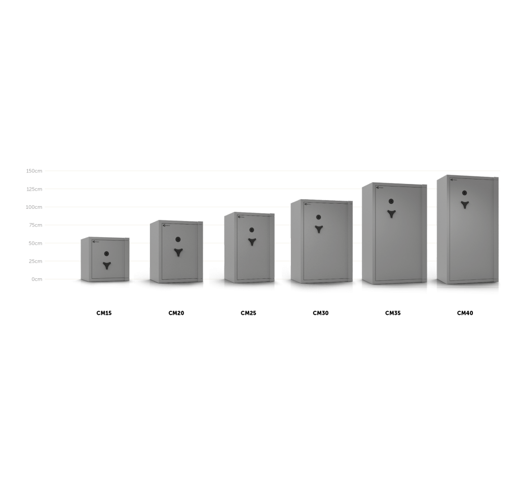 Die CM-Serie hat den Anspruch, mit geringen Außenabmessungen und maximalem Fassungsvermögen allen Anforderungen des Widerstandsgrades III gerecht zu werden. Die CM-Tresore sind ideal, wenn ein hoher Schutzbedarf für Wertgegenstände besteht und der verfügbare Platz am Aufstellort bestmöglich genutzt werden soll.