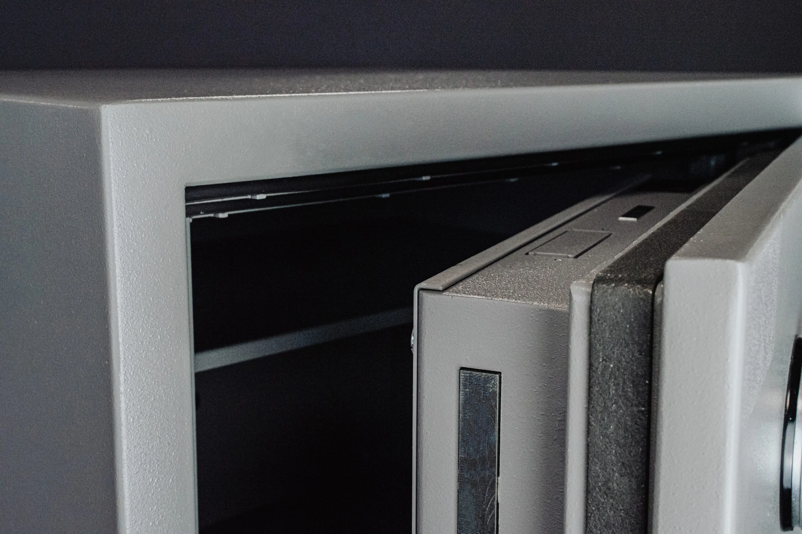 Das Türband ist standardmäßig rechts angeschlagen und kann bei jedem Modell ohne Aufpreis mit Linksanschlag bestellt werden. Durch das für Wertheim typische, außenliegende Türband wird ein Türöffnungswinkel von bis zu 180° ermöglicht. Dadurch kann die gesamte Innenbreite des Tresors bequem genutzt werden.