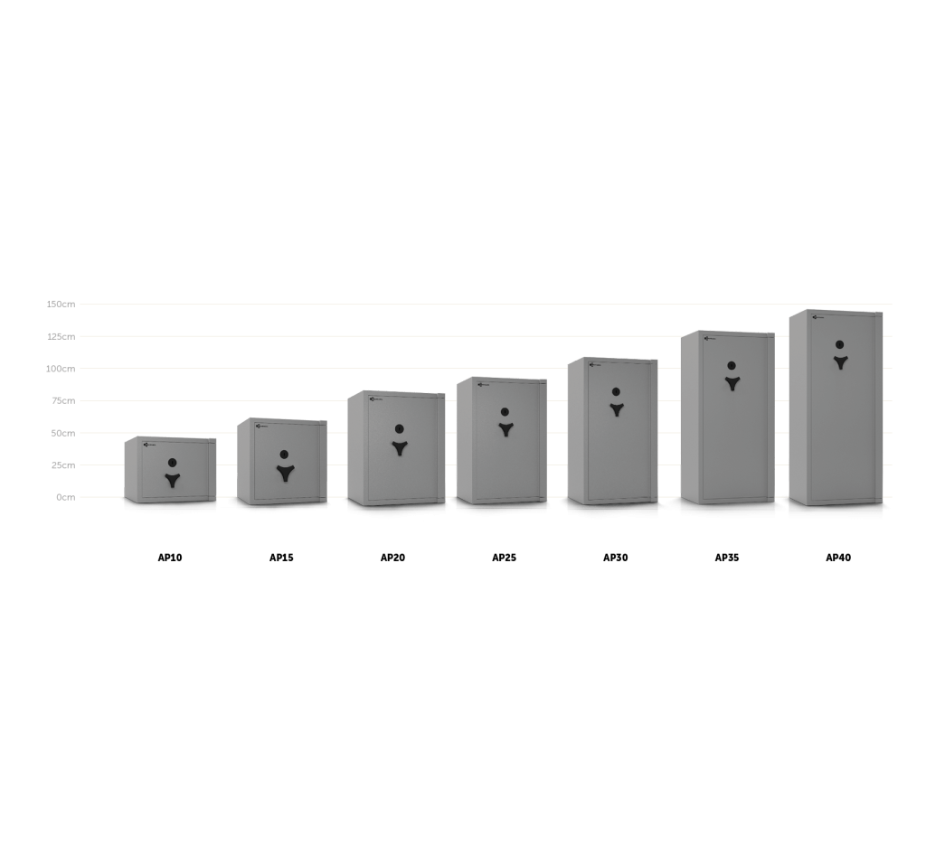 Die Tresore der AP-Serie entsprechen der europäischen Norm EN1143-1 und sind im Widerstandsgrad I zertifiziert. Die AP-Tresore mit Brandschutz sind nach der EN15659 geprüft und erfüllen LFS30 (Modell AP10 – LFS60). Sie bieten somit 30 Minuten (AP10 – 60 Minuten) Feuerschutz für Papierdokumente. Ihre Werte in einem AP-Tresor können bis zu € 65.000 im privaten und bis zu € 20.000 im gewerblichen Bereich versichert werden (Versicherungswerte können variieren – bitte erkundigen Sie sich bei Ihrer Versicherungsgesellschaft). Durch die Kombination von Einbruchschutz und Brandschutz bieten AP-Tresore umfassenden Schutz für Ihre wertvollen Dokumente.